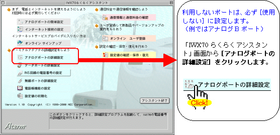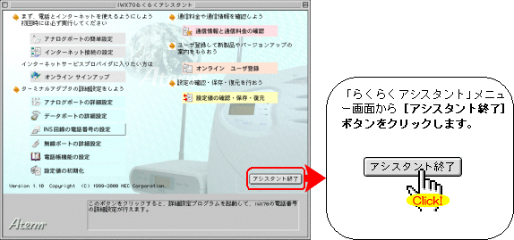 当設定画面は、アシスタントVer1.10、ファームウェアVer1.40を利用した説明になっています。 (当設定画面は、IWX70のらくらくアシスタントを利用しています。)