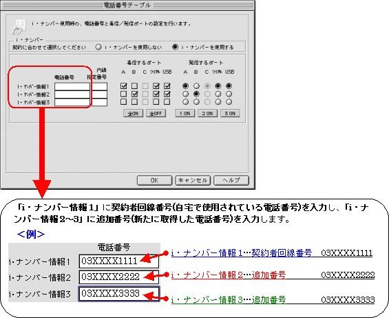 設定する際には、ご利用になる環境に読み替えて、実際にご利用の電話番号にて設定してください。