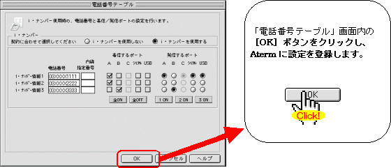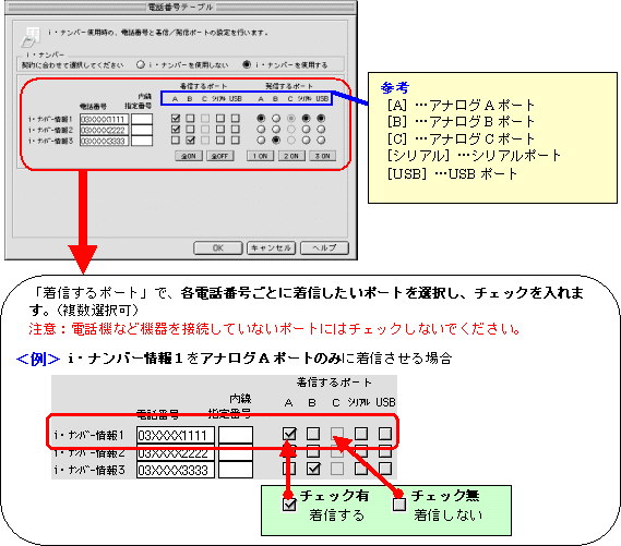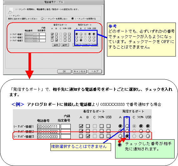 本画面では、事例として次のように電話番号を割り振る設定方法を記載しています。