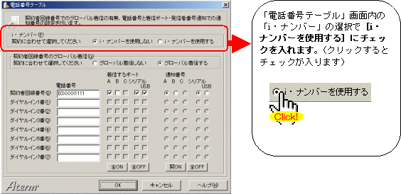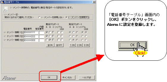 本画面では、事例として次のように電話番号を割り振る設定方法を記載しています。