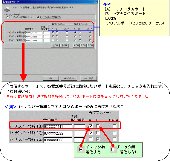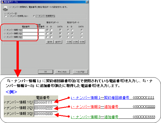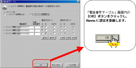 本画面では、事例として次のように電話番号を割り振る設定方法を記載しています。