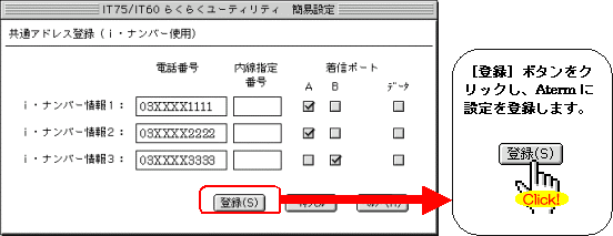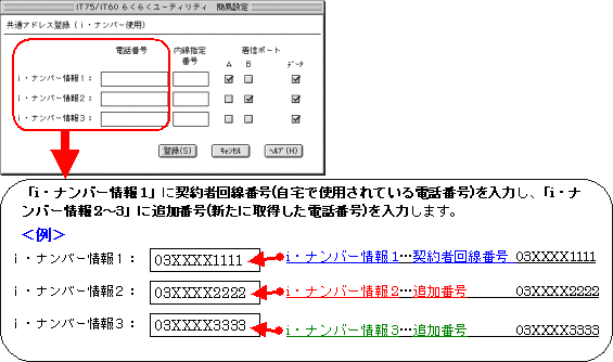 設定する際には、ご利用になる環境に読み替えて、実際にご利用の電話番号にて設定してください。