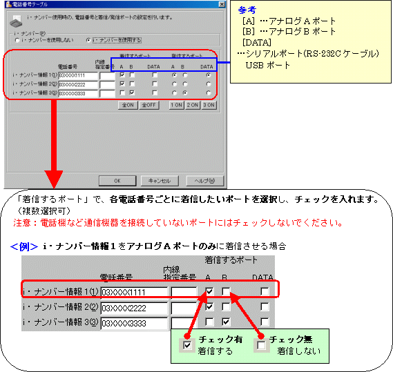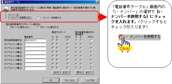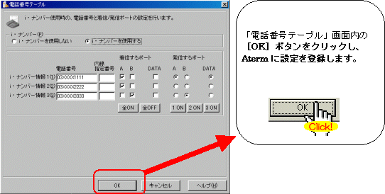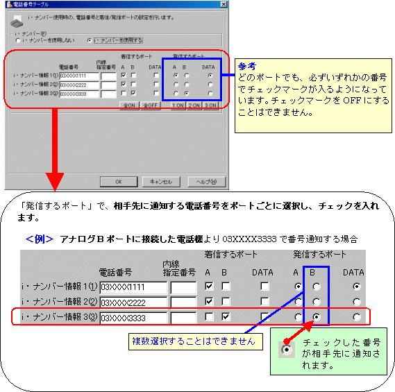 本画面では、事例として次のように電話番号を割り振る設定方法を記載しています。