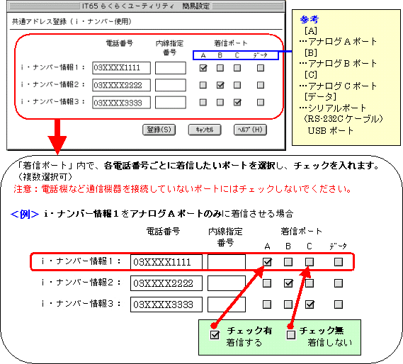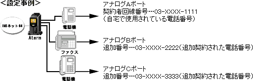 本画面では、事例として次のように電話番号を割り振る設定方法を記載しています。