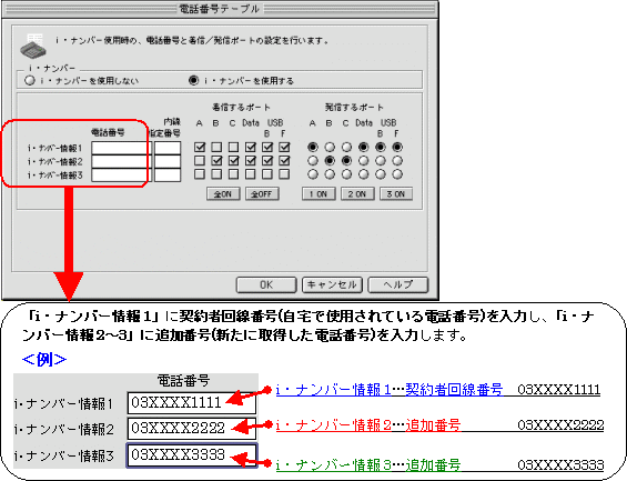 設定する際には、ご利用になる環境に読み替えて、実際にご利用の電話番号にて設定してください。