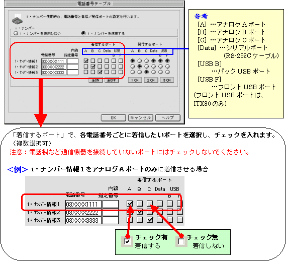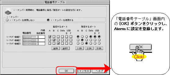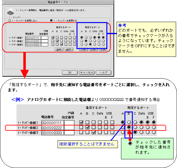 本画面では、事例として次のように電話番号を割り振る設定方法を記載しています。