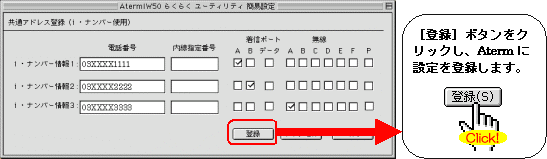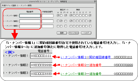 設定する際には、ご利用になる環境に読み替えて、実際にご利用の電話番号にて設定してください。