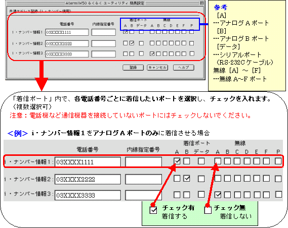 本画面では、事例として次のように電話番号を割り振る設定方法を記載しています。