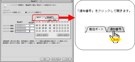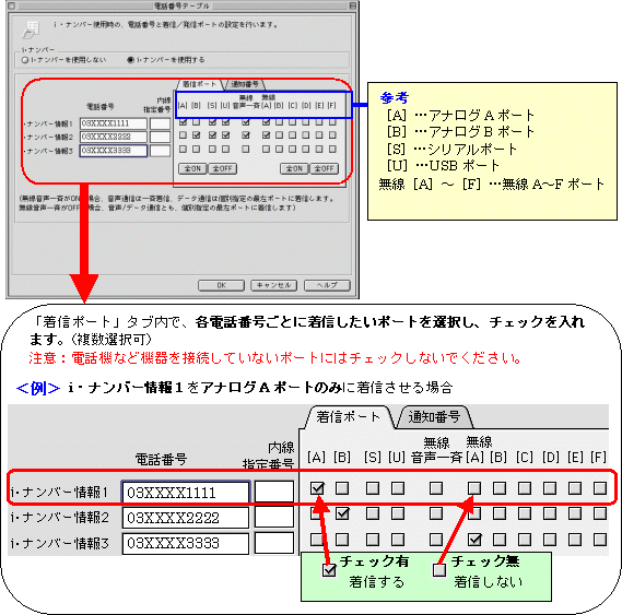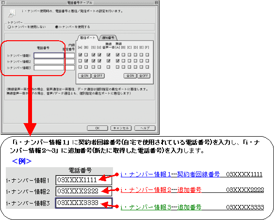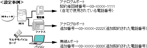 本画面では、事例として次のように電話番号を割り振る設定方法を記載しています。 設定する際には、ご利用になる環境に読み替えて、実際にご利用の電話番号にて設定してください。