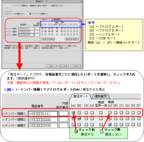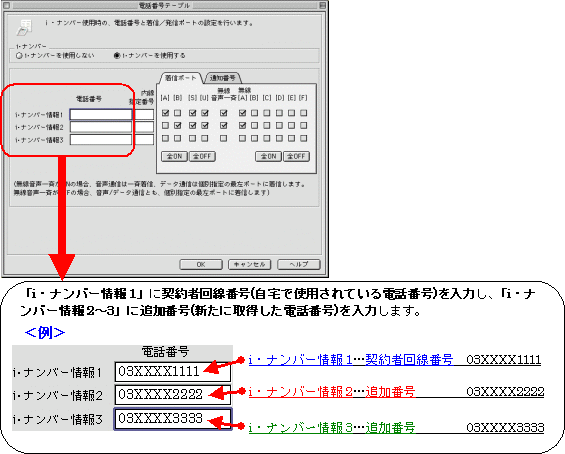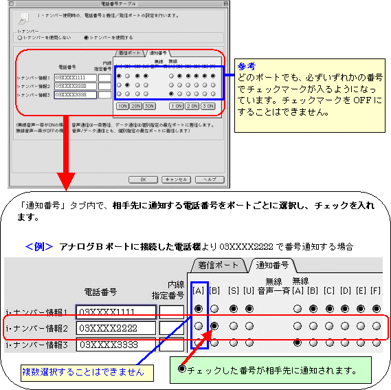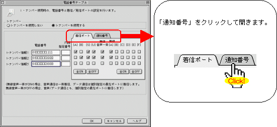 本画面では、事例として次のように電話番号を割り振る設定方法を記載しています。