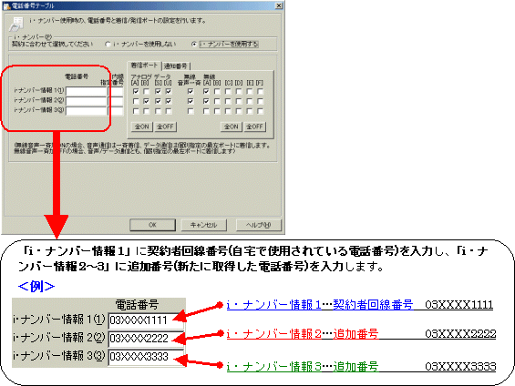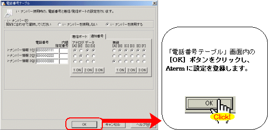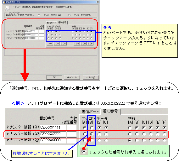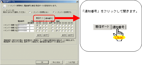 本画面では、事例として次のように電話番号を割り振る設定方法を記載しています。