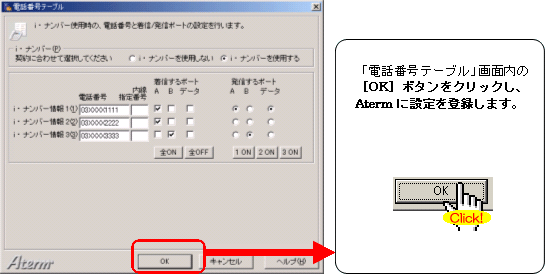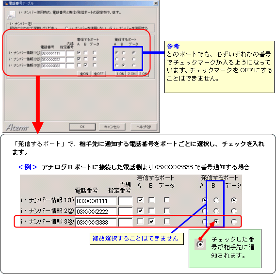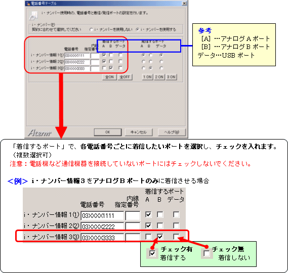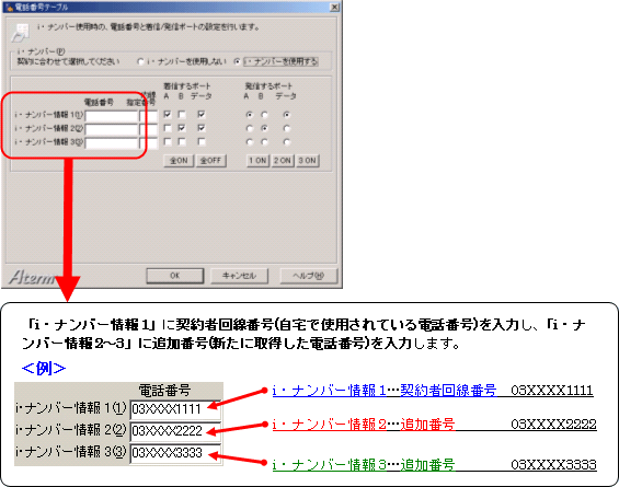 本画面では、事例として次のように電話番号を割り振る設定方法を記載しています。