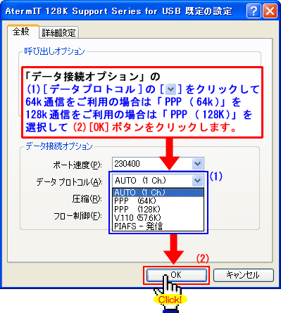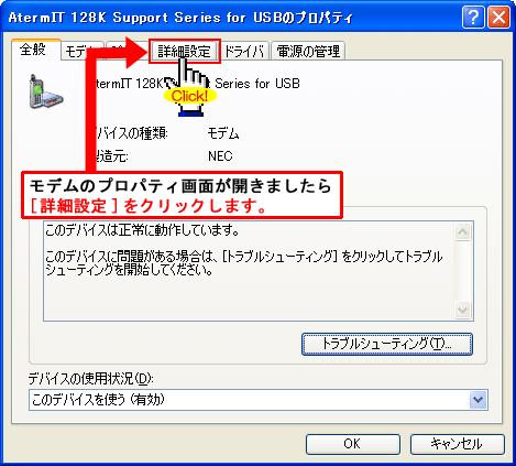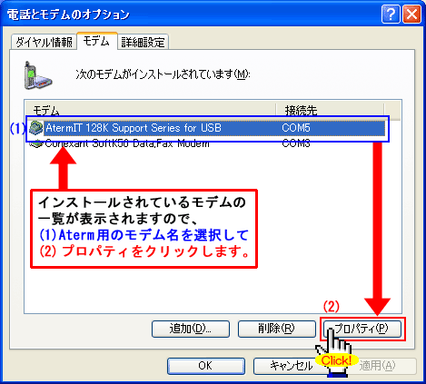 <Windows 2000/XPでのモデムの既定値変更方法>