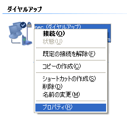 ダイヤルアップアイコンを右クリックし、プロパティをクリックします。