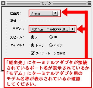 USB接続の場合、「経由先」にAtermの表示が無い場合、USBドライバが正常にインストールされていない可能性があります。