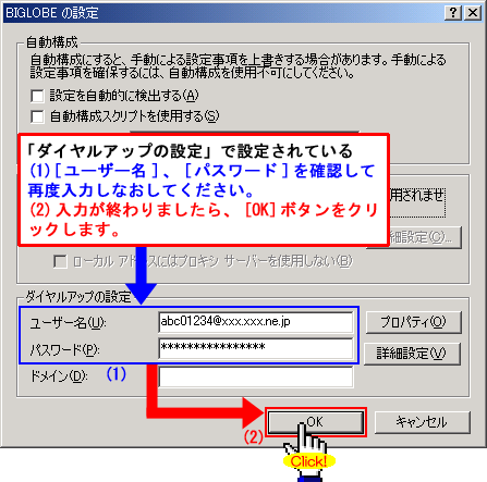 ユーザー名、パスワードの設定についての詳細はご契約のプロバイダにお問合せください。 |