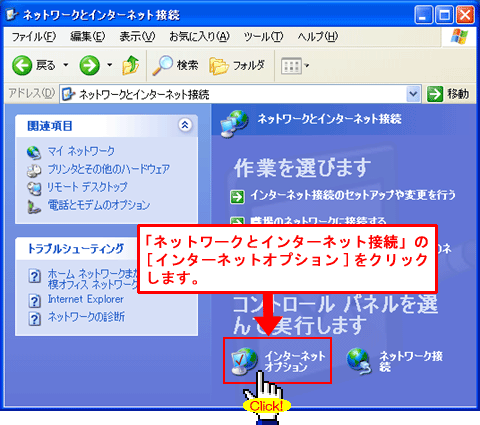 クラシック表示を利用している場合は、「インターネットオプション」のアイコンをダブルクリックします。 |