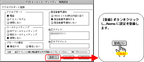 本画面では、事例として次のような設定方法を記載しています。 設定する際には、ご利用になる環境に読み替えて、実際にご利用の電話番号にて設定してください。