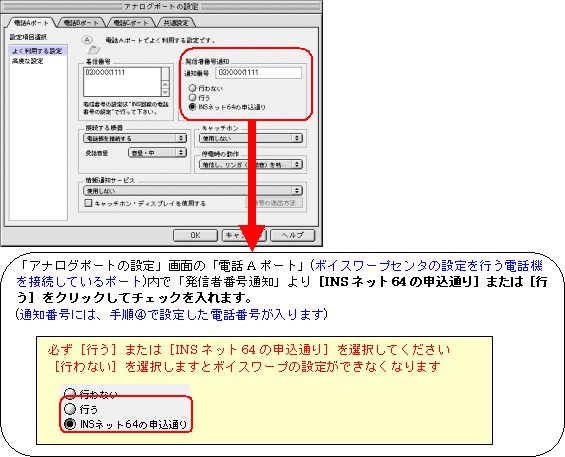 (i・ナンバー、INSダイヤルインサービスをご利用の方は、各サービスの設定方法を合わせてご参照ください)