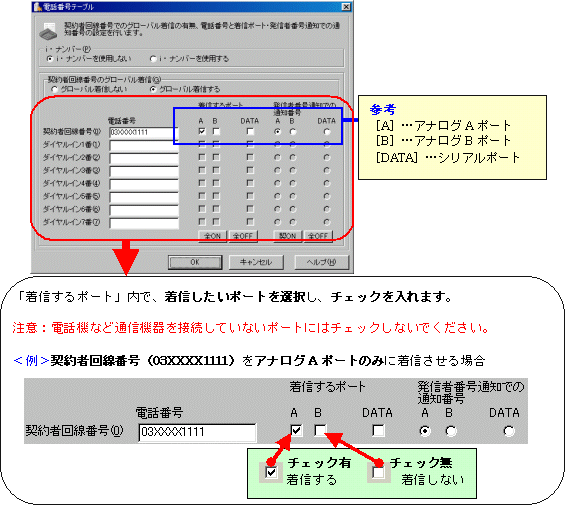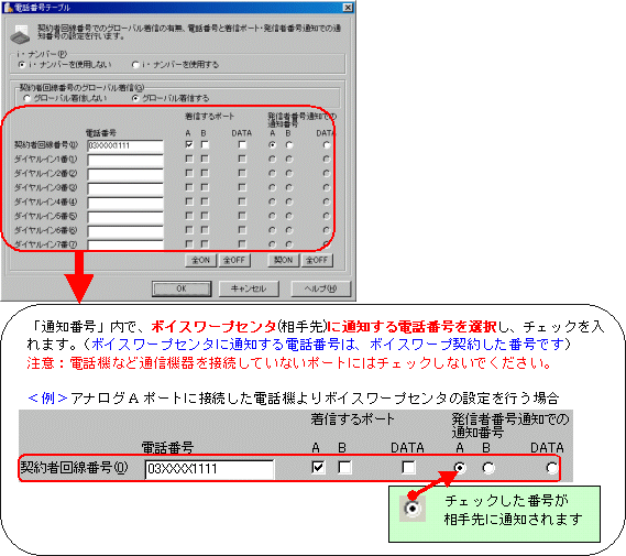 (i・ナンバー、INSダイヤルインサービスをご利用の方は、各サービスの設定方法を合わせてご参照ください)
