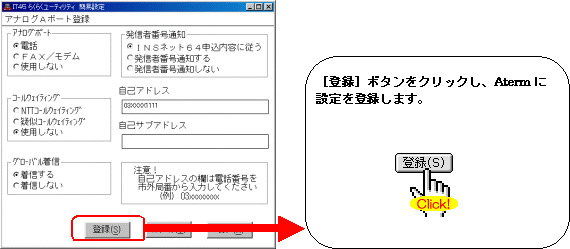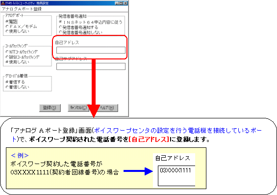 設定する際には、ご利用になる環境に読み替えて、実際にご利用の電話番号にて設定してください。