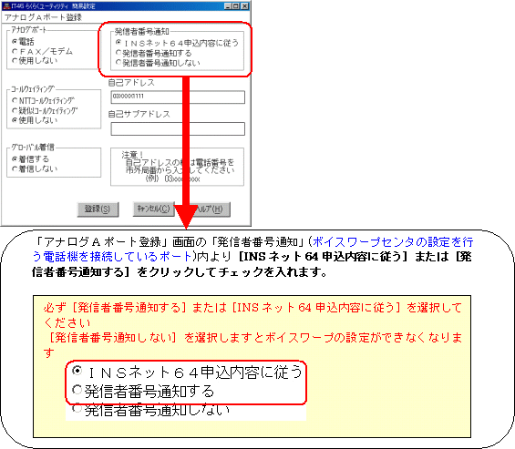 (INSダイヤルインサービスをご利用の方は、各サービスの設定方法を合わせてご参照ください)