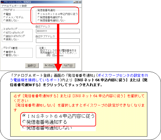 (INSダイヤルインサービスをご利用の方は、各サービスの設定方法を合わせてご参照ください)