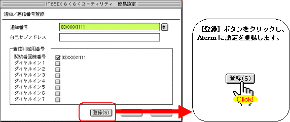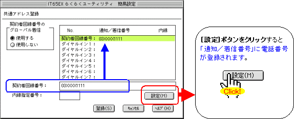 本画面では、事例として次のような設定方法を記載しています。 設定する際には、ご利用になる環境に読み替えて、実際にご利用の電話番号にて設定してください。
