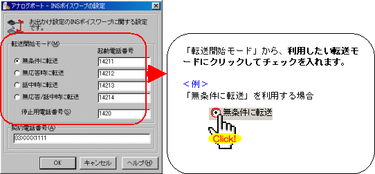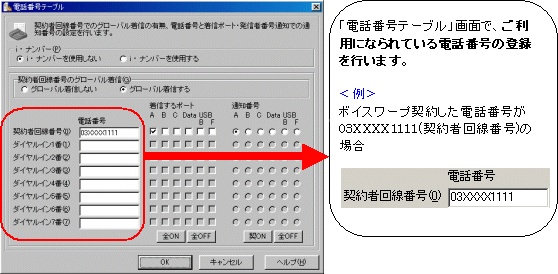 (i・ナンバー、INSダイヤルインサービスをご利用の方は、各サービスの設定方法を合わせてご参照ください)