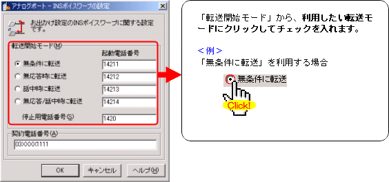 (i・ナンバー、INSダイヤルインサービスをご利用の方は、各サービスの設定方法を合わせてご参照ください)