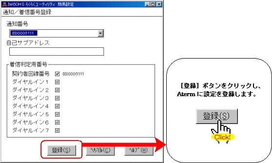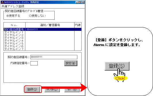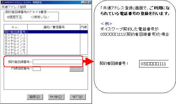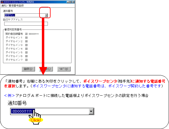 設定する際には、ご利用になる環境に読み替えて、実際にご利用の電話番号にて設定してください。