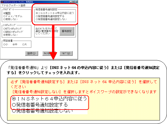 (INSダイヤルインサービスをご利用の方は、各サービスの設定方法を合わせてご参照ください)