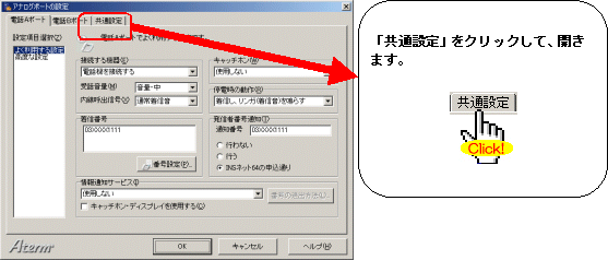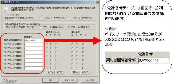 本画面では、事例として次のような設定方法を記載しています。 設定する際には、ご利用になる環境に読み替えて、実際にご利用の電話番号にて設定してください。