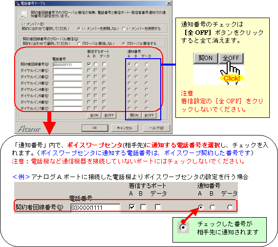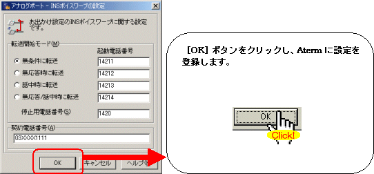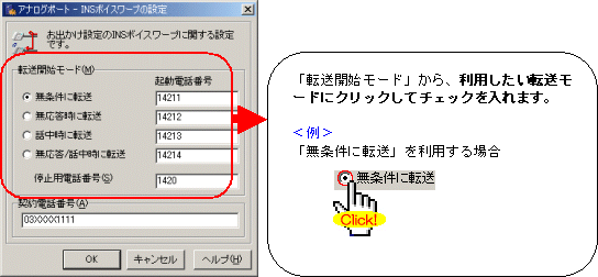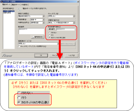 (i・ナンバー、INSダイヤルインサービスをご利用の方は、各サービスの設定方法を合わせてご参照ください)
