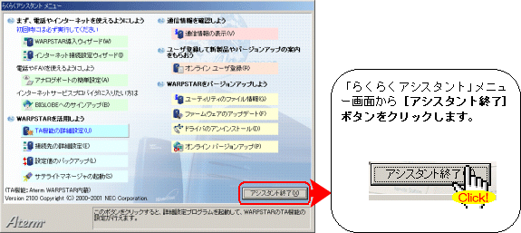 当設定画面は、アシスタントVer2.10、ファームウェアVer2.10を利用した説明になっています。 (当設定画面は、WL50Tのらくらくアシスタントを利用しています。)