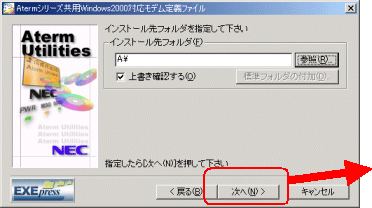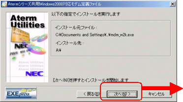 2000定義ファイル】を使用して、モデムドライバをパソコンに設定(インストール)する必要があります。