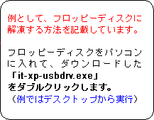 ダウンロード後、以下の手順に従ってドライバをフロッピーディスクなどに解凍してください。