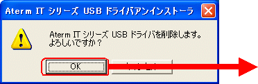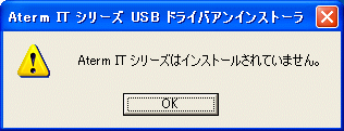 USBドライバが既にアンインストールされているか、インストールされていない場合は、以下のような画面が表示されますので[OK]ボタンをクリックして、手順6にお進みください。