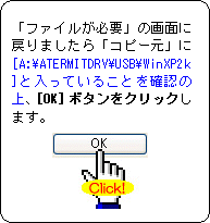 [OK]ボタンをクリックしたら、いったんフロッピーディスクを抜いてください。