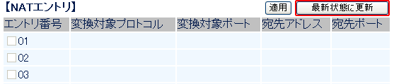 6.登録したエントリが表示されます。「エントリ番号」にチェックを入れ、「適用」をクリックします。