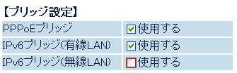 2.「IPv6ブリッジ(無線LAN)」-「使用する」をクリックし、チェックをはずします。
