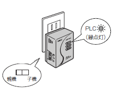 4.PLCアダプタ子機を、電源コンセントに取り付けます。PLCランプが緑点灯します。