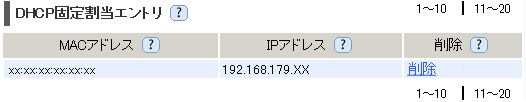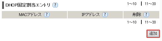 - 「DHCP固定割当エントリ」に最大20件のMACアドレスを登録できます