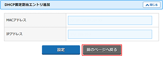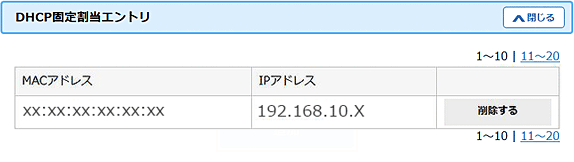 7.「DHCP固定エントリ」に設定内容が表示されます。