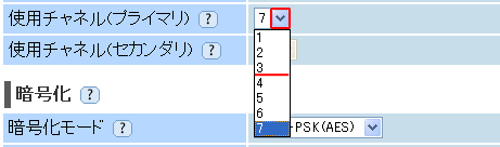 - 他の無線LANからの影響を避けるには、そのチャネルから4チャネル以上(安定した通信を行うためには5チャネル以上)空けることをお勧めします。現在、使用中のチャネルは、左メニューの「情報」-「現在の状態」にてご確認いただけます