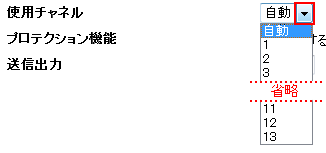 - 他の無線LANからの影響を避けるには、そのチャネルから4チャネル以上(安定した通信を行うためには5チャネル以上)空けることをお勧めします。現在、使用中のチャネルは、左メニューの「情報」-「現在の状態」にてご確認いただけます