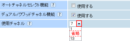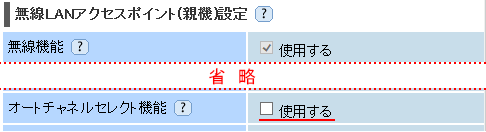 - 機種によっては、5GHz使用時「オートチャネルセレクト機能」-「使用する」のチェックを外すことができないため、チャネル変更ができない場合があります