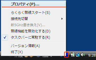 1.タスクトレイのサテライトマネージャーを右クリックし「プロパティ」を開きます。