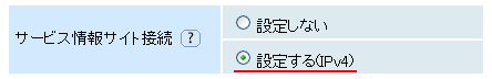 2-6.「フレッツADSL」、「Bフレッツ」をご契約で「サービス情報サイト※(IPv4)」、「フレッツ・ウイルスクリア」を利用する場合は「設定する(IPv4)」を選択します。
