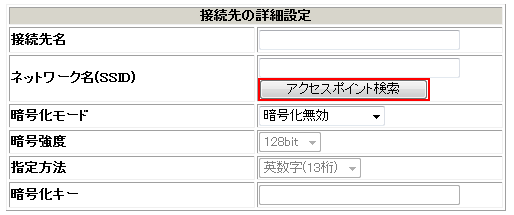- Wi-Fiルータに設定されている「暗号化キー」を入力します。大文字「ABC・・・・」と小文字「abc・・・・」は区別されます。「暗号化モード」の種類によっては「暗号化強度」「指定方法」の選択が必要な場合があります。Wi-Fiルータに合わせて設定します